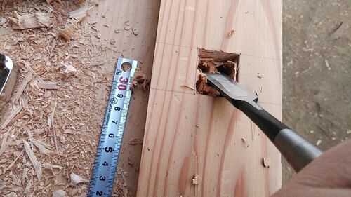 四角い穴を掘るのはいつも苦労する。 まぁ、荒っぽい仕上げだけど、なんとなくできてしまったわけだが。 前日に研ぎたての切れ味にも助けられたな。 あぁ、日々是好日。