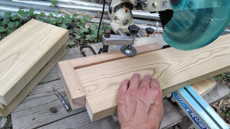 ストッパーを作って、装着してから切るのは、スライドマルノコでは序の口の技術。