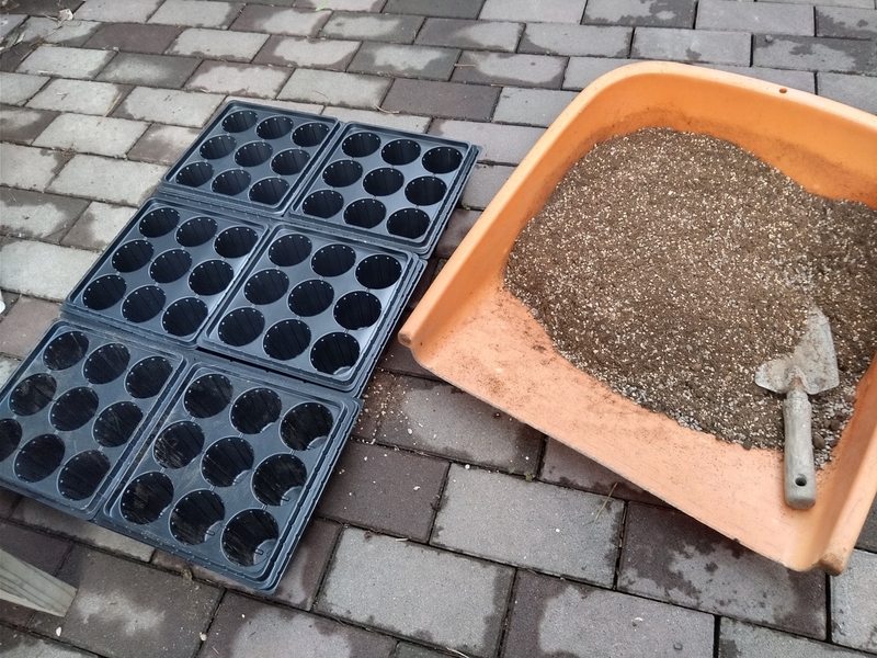 今回は、手持ちの培養土も追加して、3箱分がまかなえるようにします。