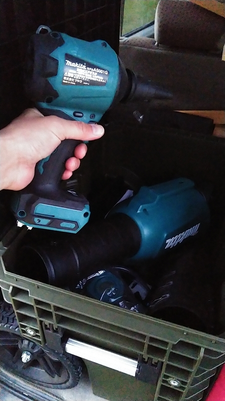 木材をどかすと、やっとエアダスタやブロワにたどりつく。