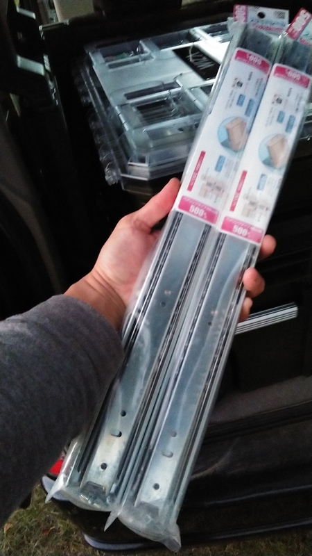 そうそう、スライドレールによる棚も面白そうなので、ビバホーム行ったときに500mmのレールを買っておきました。