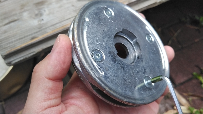 草刈りしているときに、紐状のものが引っかかって取れなくなったので、分解してみます。