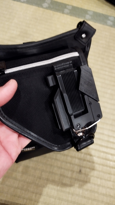 他にも他社製品の肩かけベルトがある中でコレにしたのは、金具が黒メッキだったことでした〜。