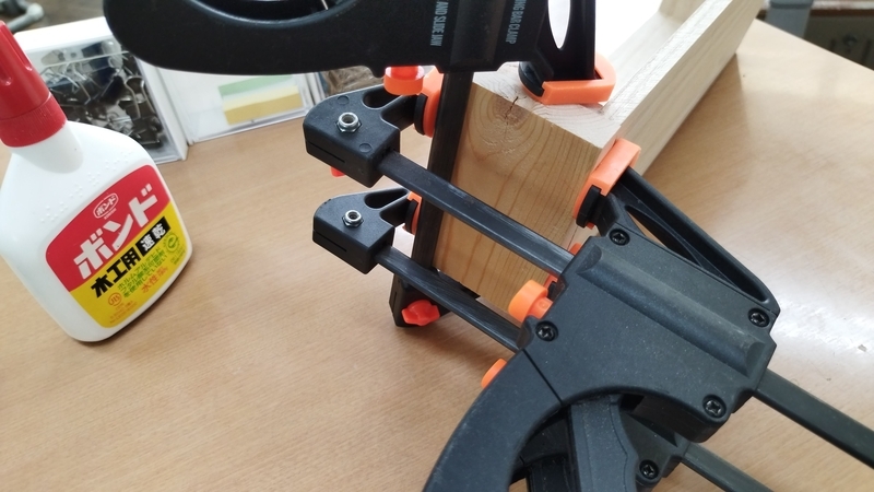 ボンドが乾いたころに、SK11のタッカーでフィニッシュネイル止め。